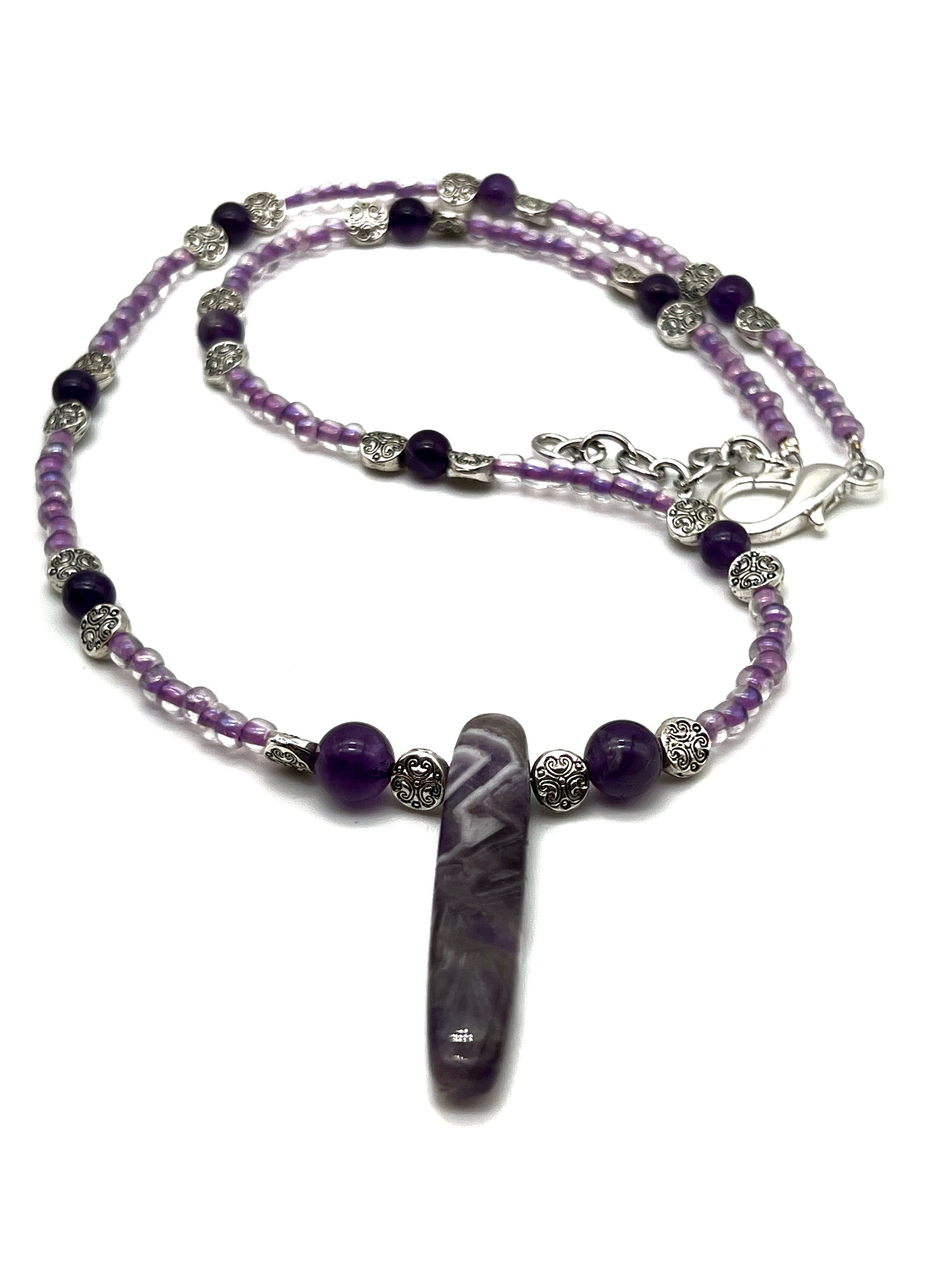 This stainless steel and indigo tiger stone necklace is a unisex design that is perfect for all. The natural stone is sourced from Ghana, Africa, and it symbolizes strength, courage, and protection. Embrace your inner tiger with this unique and meaningful accessory.